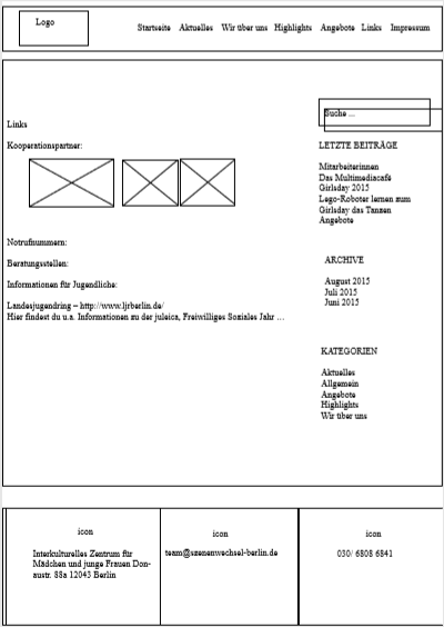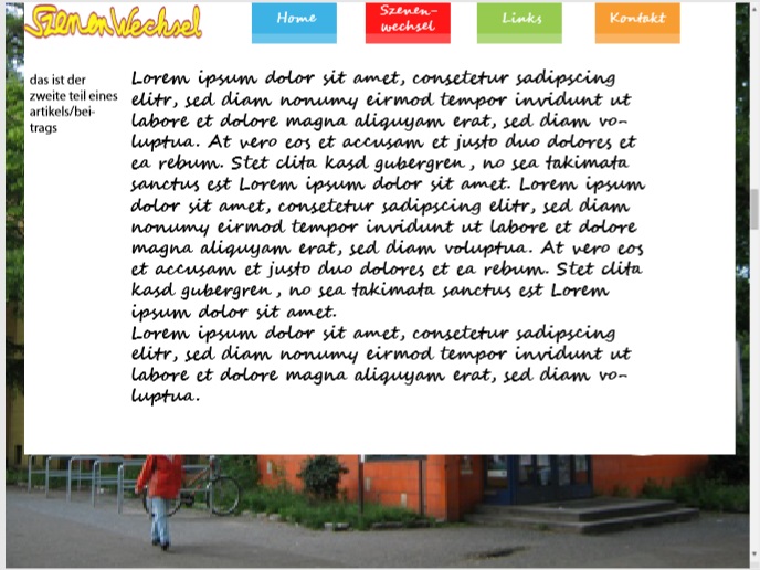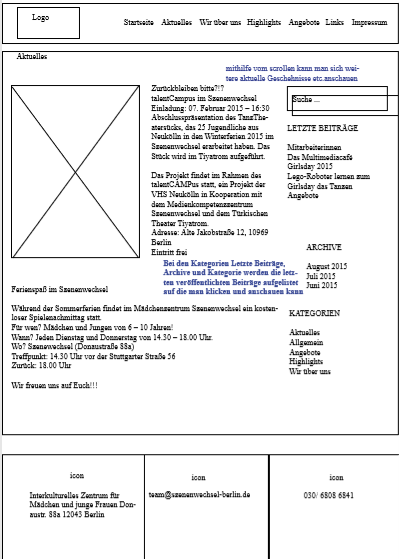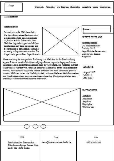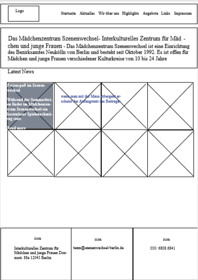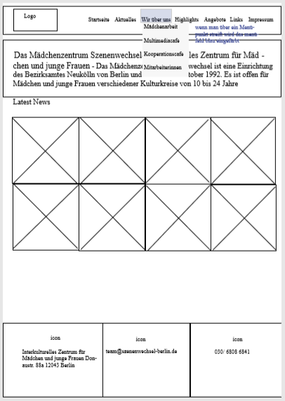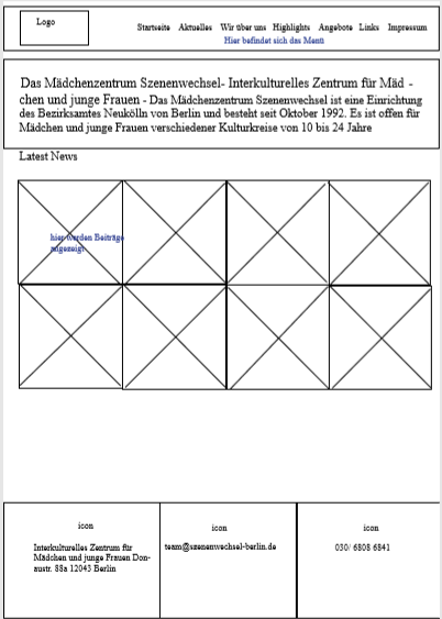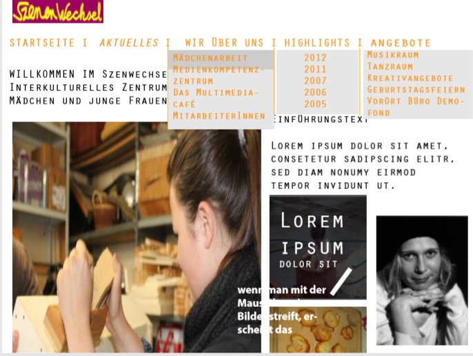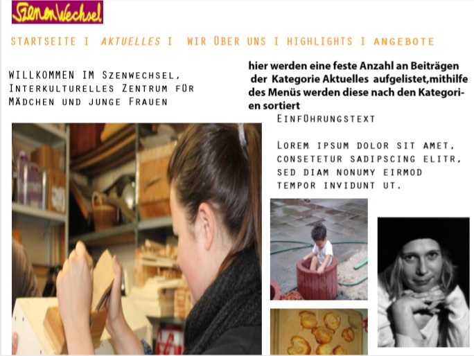 I ,Dominique Mireille Cimen, student of the study course Media and Communication Design would like to do redesign as a study initiative the Website of the Intercultural Centre for Girls and Young Women Scene Change,an institution of the District Office Neukölln of Berlin, . (http://www.szenenwechsel-berlin.de/site/ ( Status of 2015) ) This facility is open to girls and young women from different cultural backgrounds from 11 to 24 years and offers various offers such as: -Music Room -Dance Room -Creative Offers -Birthday Celebrations