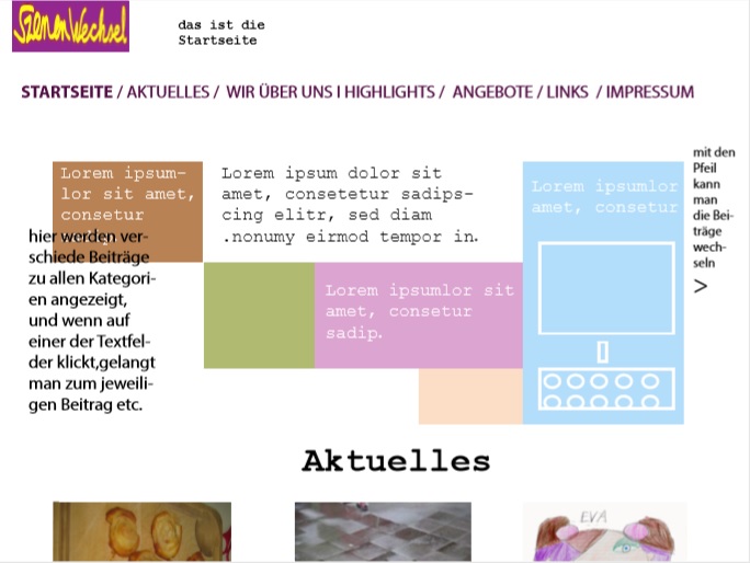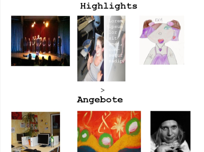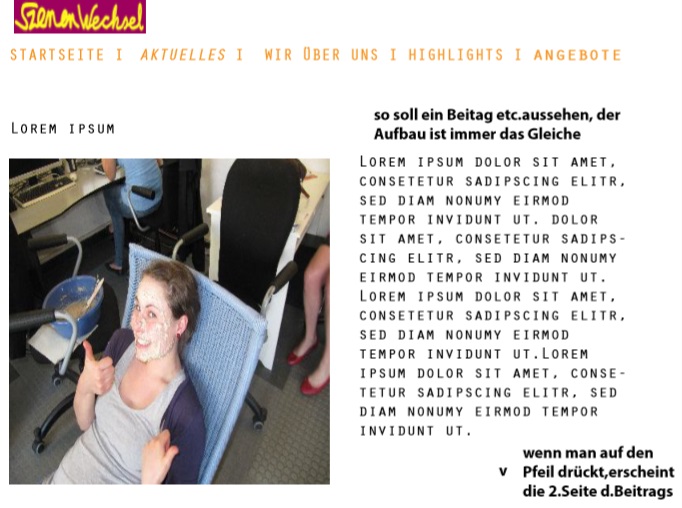 Feedback on Design 2 (selected design): - best design of the three presented design suggestions - all functions are retained - many pictures are good - through the contributions to the start page there is always topicality - very clear - easily remembering process The centre gave me a lot of leeway in the creation of the website and also gave me the opportunity to improve and change the design concept.