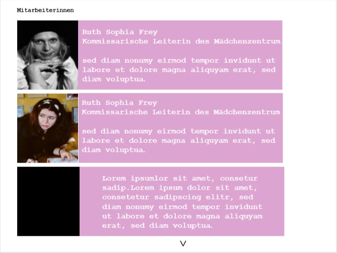 By developing the concept of the website as well as creating/programming, I was able to develop my knowledge of WordPress and apply the learned design process for web pages. Through the participation of the Girls' Centre Scene Change, I learned to work with a social institution, which is important and what differs from companies. The scope given to me by the Girls' Centre to develop and change my design ideas and concepts helped me to develop different design concepts with the help of design research.